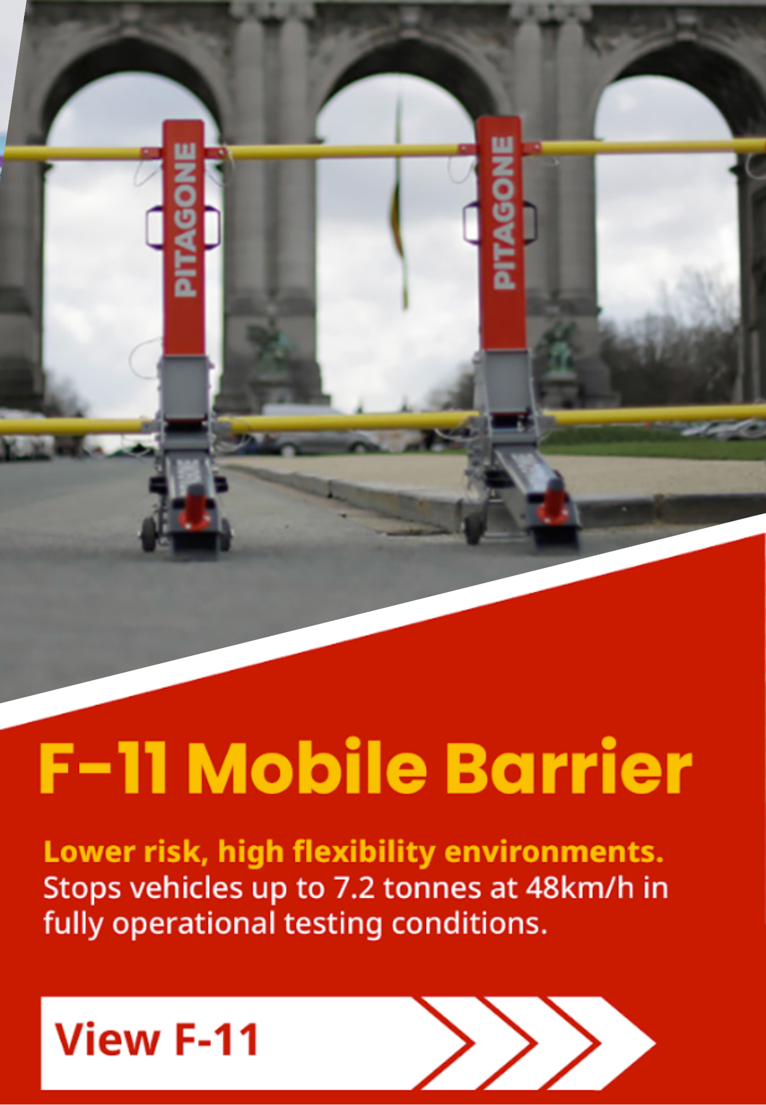 Pitagone’s range of mobile Hostile Vehicle Mitigation barriers, developed to provide scalable protection across a variety of public environments. Each system is engineered and manufactured in Belgium and tested in fully operational configurations, reflecting how barriers are used on site rather than in idealised conditions.